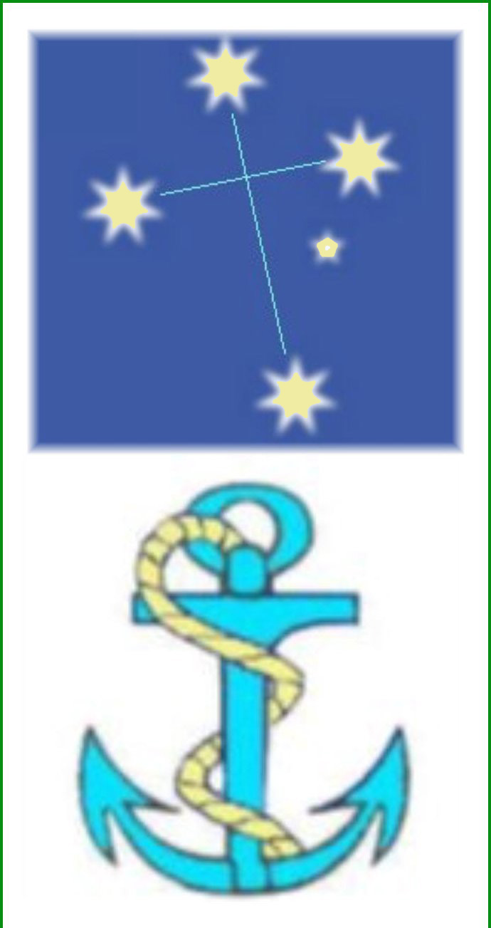 The symbol on the left is an unofficial logo made by Stan O'Loughlin to denote the title of the1997 book "Anchor Under the Southern Cross" about our particular branch of O'Loughlins in Australia.